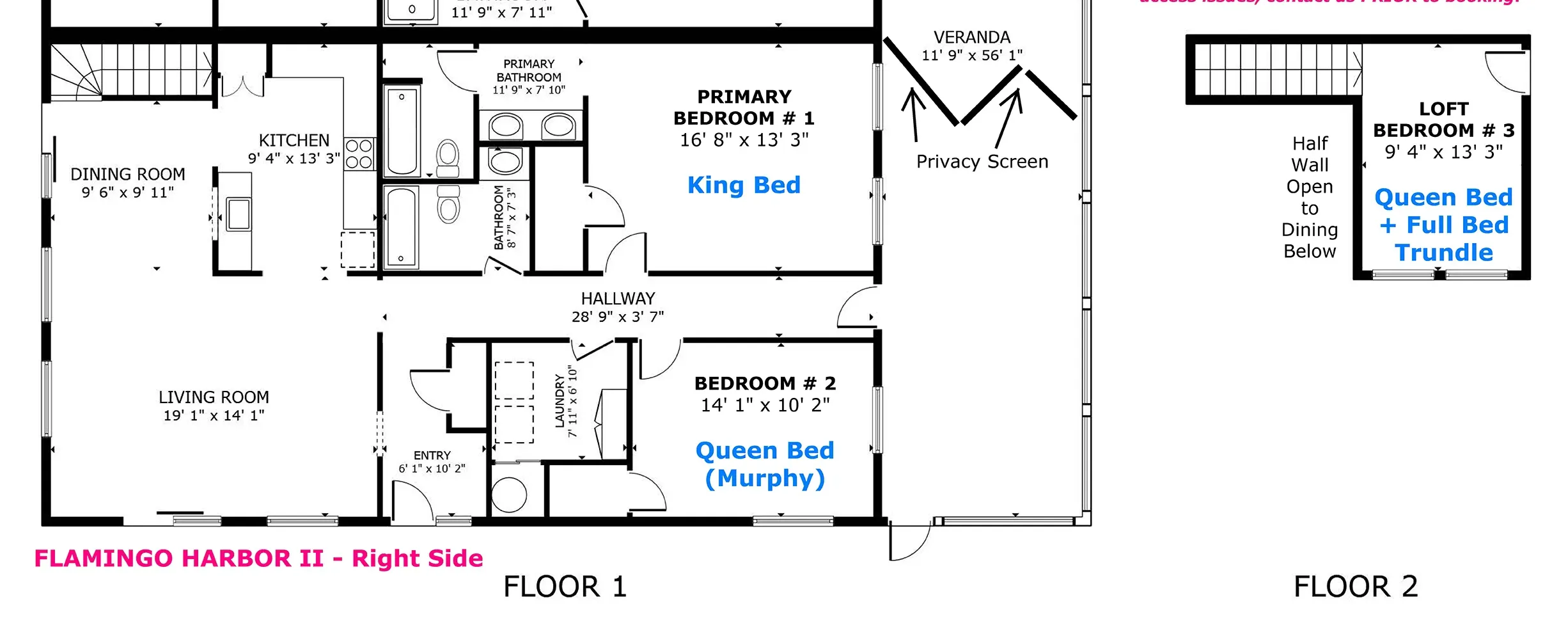3 Bed/2 Bath – sleeps 8 and is accessed by dedicated exterior stairs.